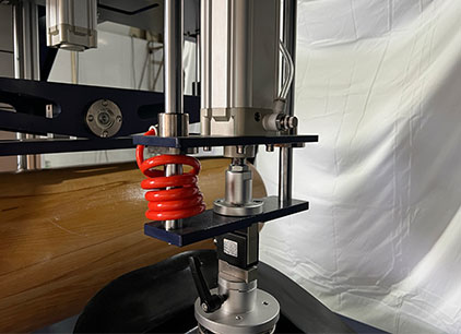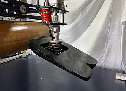 將床墊用夾具固定在試驗(yàn)機(jī)平臺(tái)中心位置,采用一個(gè)滾動(dòng)式加載模塊置于水平放置的床墊的加載部位,以一定頻率滾動(dòng),對(duì)床墊進(jìn)行往復(fù)加載,以檢驗(yàn)床墊對(duì)長(zhǎng)期重復(fù)性滾動(dòng)荷載的承受能力。按照測(cè)試標(biāo)準(zhǔn)設(shè)定好測(cè)試條件,進(jìn)行各個(gè)項(xiàng)目的測(cè)試;軟件自動(dòng)計(jì)算測(cè)試結(jié)果并保存!